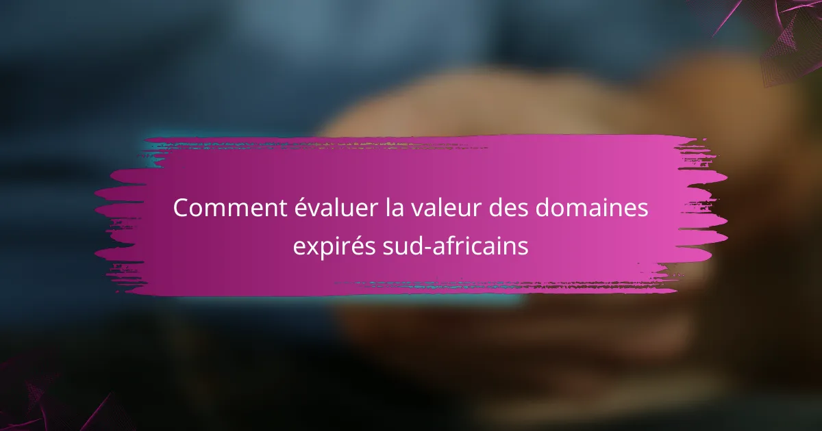 Évaluer la valeur des domaines expirés en Afrique du Sud nécessite une analyse minutieuse de divers indicateurs clés qui peuvent influencer leur efficacité pour le SEO et la génération de trafic. Les facteurs importants à considérer incluent l’autorité du domaine, les profils de backlinks et les données de trafic historiques, ainsi que l’âge du domaine et son classement dans les moteurs de recherche. De plus, évaluer l’historique et la réputation du domaine est crucial pour éviter d’éventuelles pénalités et garantir un impact positif sur votre présence en ligne.