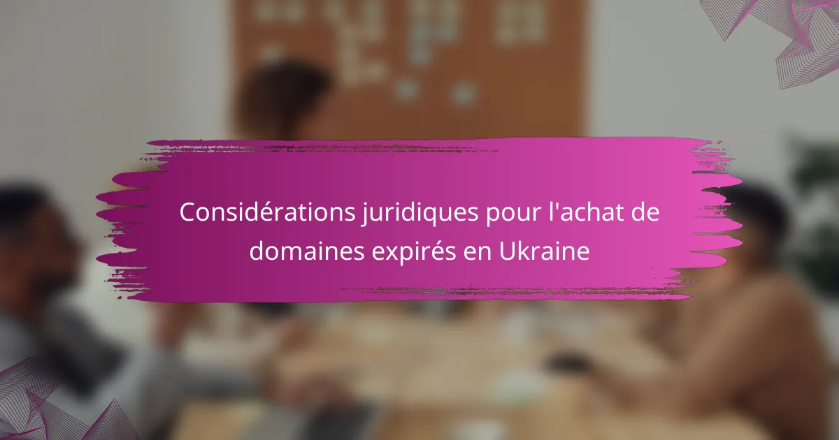Lors de l’achat de domaines expirés en Ukraine, il est crucial de suivre les meilleures pratiques qui garantissent la conformité légale et maximisent la valeur. Les étapes clés incluent la réalisation d’une due diligence approfondie, l’engagement d’un conseiller juridique et l’évaluation du potentiel SEO du domaine.